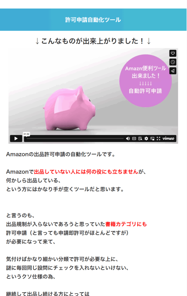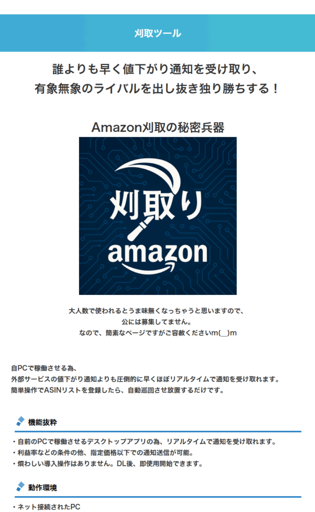 仕入以外の管理業務(出品、出荷、価格改定、記帳など)をITの力で極限まで効率化、省力化を可能にしました。