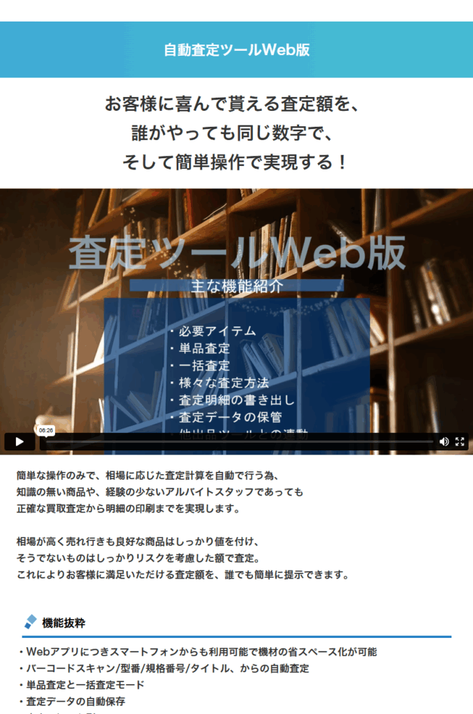 アルバイトなど誰が使っても同じ査定結果を算出します。査定後の明細書の印刷まですべて簡単に行えます。
